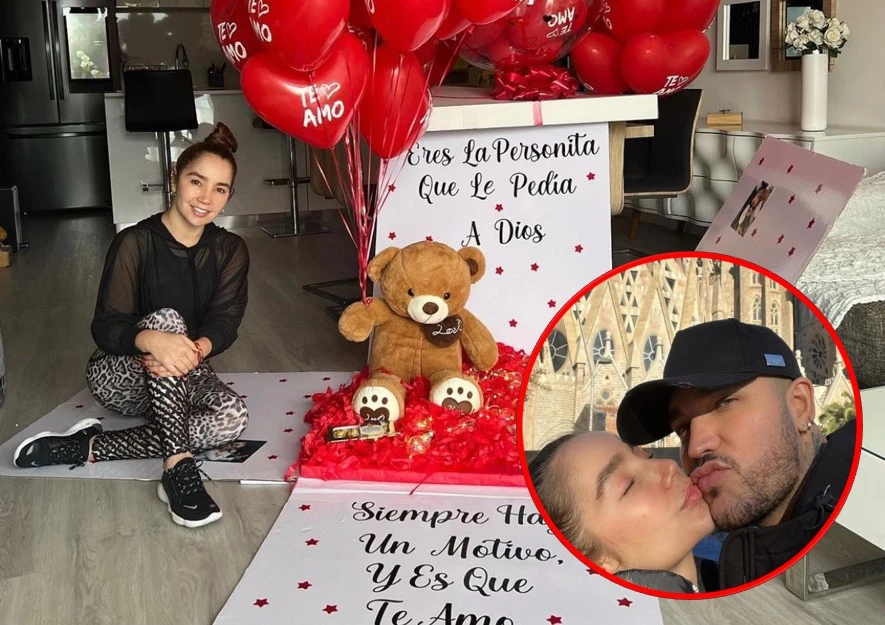 Una enorme caja, con una gran cantidad de globos rojos con la frase ‘Te amo’ fue enviada por el artista. En su interior, según se evidencia en la foto compartida por Jara, había un oso de peluche, chocolates, fotografías y unos románticos mensajes.