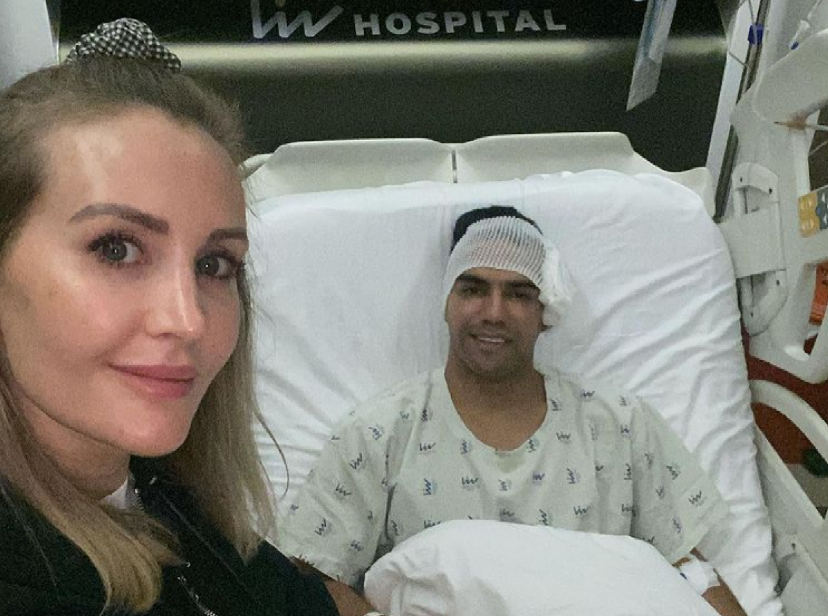 La esposa de Radamel ‘El Tigre’ Falcao reveló la primera foto del jugador tras sufrir una fractura en el rostro como consecuencia de un choque con otro jugador durante un entrenamiento con su equipo turco, el Galatasaray .