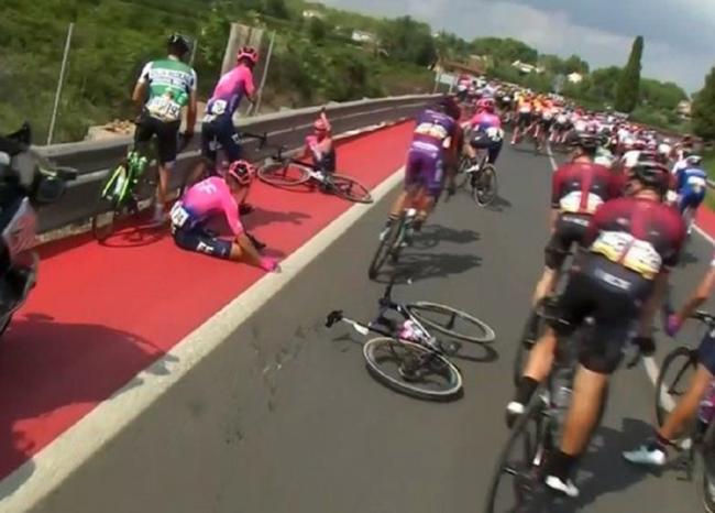 Pese a que se trató de una fuerte caída en el comienzo de la etapa de este martes, el antioqueño fue reincorporado rápidamente al pelotón gracias a la ayuda de su equipo, Education First.